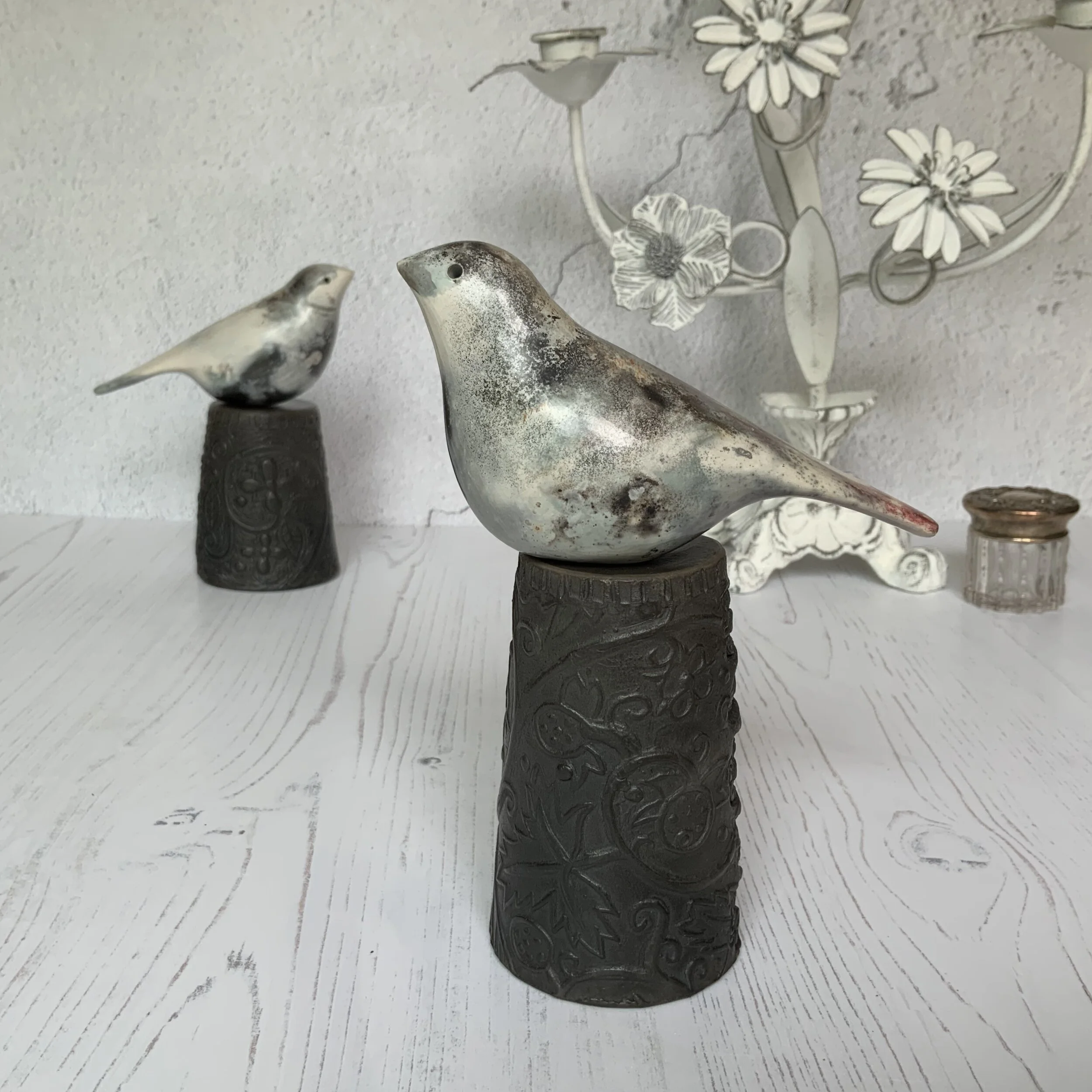 The larger smoke fired birds are individually hand made and are unique. These are just examples of birds I have made.